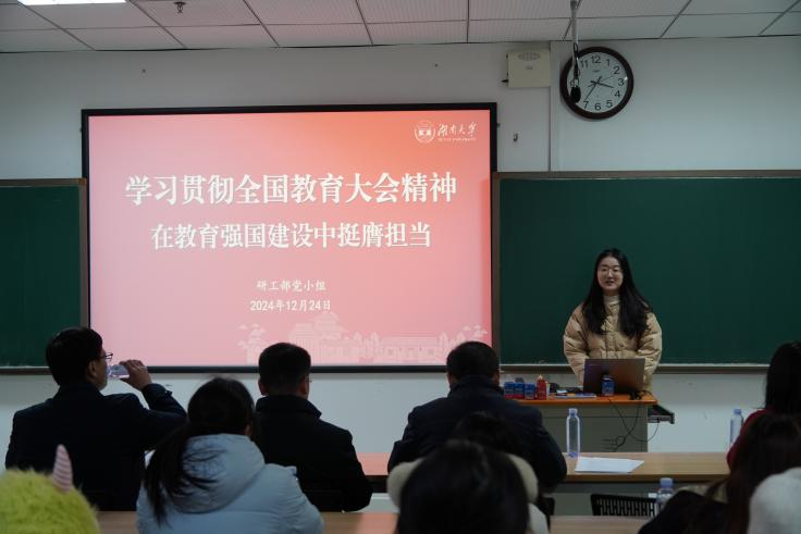 会议最后,研工部党小组代表围绕如何建设教育强国、建设什么样的教育强国、怎样建设教育强国作“学习贯彻全国教育大会精神,在教育强国建设中挺膺担当”主题分享,学位办党小组代表围绕心理问题的识别与应对等内容作“心理健康的维护”主题分享。